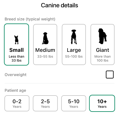 CANINEBEAT can provide analysis for all dog breed sizes and ages. After auscultating, you’ll be prompted to select the patient’s breed size (based on the typical weight for that breed), and age.